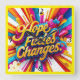 A vibrant design where multi-coloured text "Hope Fuels Changes." radiates with energy, each letter gleaming with golden accents that symbolize hope’s power to transform. The lively hues blend together in harmony, evoking a sense of optimism and renewal, while the golden highlights add an inspiring touch of warmth and promise. "Original Image was generated by Meta AI. AI generated artwork. Licensed under CC BY-SA 4.0.