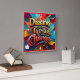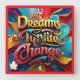 A vibrant design featuring the text "Dreams Ignite Change" in a dazzling array of colours, accented with golden touches that shimmer like stars. The bold typography is surrounded by abstract shapes and swirling patterns, symbolizing the energy and potential of creativity. This piece inspires viewers to embrace their aspirations and transform them into reality."Original Image was generated by Meta AI. AI generated artwork. Licensed under CC BY-SA 4.0.
