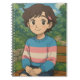 Cute anime transgender person in a trans sweater sitting outside on a bench. A sweet notebook.