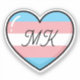 Monogrammed sticker with a trans heart with inside flag in light blue, pink and white. Stick on your water bottle, phone case, tablet care or notebook and show your pride.