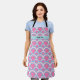 Medium-sized apron with a seamless pattern with rainbows in the colours of the transgender pride flag; pink, white, and blue on a pink background, with a customizable text template for your own name or message