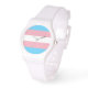 The Transgender Pride Flag was created by American trans woman Monica Helms in 1999, and was first shown at a pride parade in Phoenix, Arizona, United States in 2000. The flag represents the transgender community and consists of five horizontal stripes: two light blue, two pink, and one white in the centre. The stripes at the top and bottom are light blue, the traditional colour for baby boys. The stripes next to them are pink, the traditional colour for baby girls. The stripe in the middle is white, for those who are transitioning or consider themselves having a neutral or undefined gender.