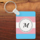 Keychain with the transgender pride flag with rainbow stripes of blue, white, and pink, trans pride design with a custom text field for your initial