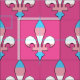 Fabric with fleur-de-lis (fleur-de-lys or lily flower) symbol with rainbow stripes of pink, blue and white from transgender flag; trans pride design on pink background