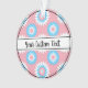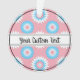 Christmas ornament with a seamless modern geometric flower pattern in the colours of the transgender pride flag - a pink, white, and blue trans pride design on a pink background; with an editable text field for your name or message; a great way to decorate your Christmas tree :D
