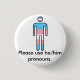 A button that shows transgender pride and states a preference for he/him pronouns.