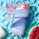 Transparent blue and lavender-coloured forms seltzer can cooler