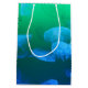 Atmospheric photograph of transparent jellyfish swimming in a blue / green sea.