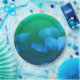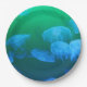 Atmospheric photograph of transparent jellyfish swimming in a blue / green sea.