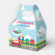 Cute transportation theme favour boxes with car, plane, truck, fire engine, train, and hot air balloon.