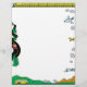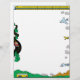 This transportation letterhead features a train for the top border, airplanes for the right border, a yellow bus scene for the bottom border, and cars travelling down a winding road for the left border.