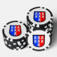 These poker chips are adorned with a Transylvania coat of arms design, featuring a striking combination of blue and red colours. The blue hue brings a sense of depth, while the red adds a vibrant touch. The intricate Transylvania coat of arms adds an air of history and mystique to the chips, making them an eye-catching addition to any poker game.