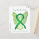 The green ribbon colour is used to show awareness for Traumatic Brain Injury (TBI). Customize this awareness ribbon postcard with your own custom personalized message that supports Traumatic Brain Injuries Awareness.