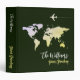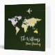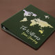 Dark-green binder... personalised with your own family name and title... with graphic image of the worldmap and an airplane
