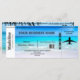 A beautiful sea side image is the background for this unique Boarding Pass Destination Tropical beach business card.