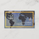 A modern and elegant idea to promote tourism professionals... Company Logo, and your name with custom travel related occupation (travel-agent)... and address for contact, and profession related words at the back... featuring a graphic black map of the world and faux gold frame...