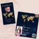 Passport Travel Agency Glitter Gold World Map Boarding Pass Business Card with gold background for makeup artist, lash extension, event planner, travel agent, hair stylist, nail artist