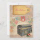 Vintage style travel themed wedding invitations featuring a trunk and a stamp background. Easily customizable so you can add all of your own details.