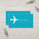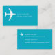 A modern and minimalist business card with basic information only... your name ('unica one' font style) with custom travel related occupation (travel consultant) and the image of a white airplane... and address, email and phone at the back... on azure blue background colour.