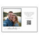 These destination photo table number cards with QR Code for photo sharing are perfect for your wedding reception! Simply choose a photo of you at every destination you are using as a table name. This is a fabulous way to share photos of you as a couple at special destinations and a great way to ask guests to upload their photos of you to your wedding website. Your guests will love sharing their fabulous photos of your wedding and reception with you. It is so easy to make these cards your own. Simply select "Personalize this Template", upload your photo, type in your qr code URL, and type in your destination table name then add to cart. Repeat for how ever many tables you will be having at your reception.