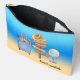 Here’s an accessory pouch for those who love to travel. “Travel Essentials” has a blue and yellow gradient background that features a suitcase, compass and globe. You can personalize the text or remove it .This style is available in two sizes. Dimensions: 12"x8.5” Large (shown here) / Dimensions: 8.5"x6" Small