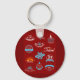 A series of different travel labels on a red background. This design looks really effective on this Keychain