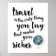 Travel is the only thing you buy that makes you richer! This print features the quote in a handwritten-style, brushstroke font, with a watercolor globe illustration.