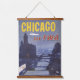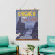 Vintage travel poster for Trans World Airlines flights to Chicago showing bridges a spanning river at night, circa 1960.
