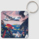 Travel Poster Of Seaplane Flying Over Caribbean Keychain