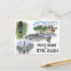 Sitka is a picturesque fishing town situated on the Gulf of Alaska. After a day of sight seeing glaciers, mountains and more, be sure to grab a spot at the grill to watch the fresh salmon BBQ and share stories of Sitka's rich past. This hand drawn travel sketch postcard is the perfect look to send to family and friends about your travel destinations and dreams. (Art and design by Wanderlust Designer)