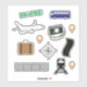 Popular fun and vintage travel stickers of camera, transportation, roads and signs. Perfect for travel journal.