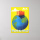 Travel the World beautiful retro style travel poster art print of a old suitcase sat on top of the earth.