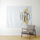 Custom Personalized "Around the World" theme Party Backdrop for a photobooth or selfie station at a travel theme birthday party with their name, age, and party or birth date printed on a soft fabric tapestry with our yellow gold colour world map and a light blue background. The type style is reminiscent of fonts used on vintage maps and old globes, but the design is simple so that your guests are the ones who shine in each photograph taken at the entryway of your event.