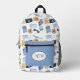 The perfect backpack for the traveller. Set on a white background, this pattern has a pattern of several travel items. In the front there’s a zipper pouch with you can customize by adding a monogram and changing the colour.
