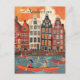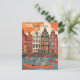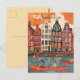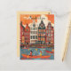 This travel postcard showcases a serene and warm illustration representing Amsterdam canals and skyline. It is a great and romantic postcard for travelers that plan to visit Amsterdam or for those who travelled Amsterdam and sending a postcard to their family or friends.