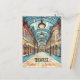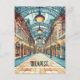 This travel postcard, in cartoonish digital illustration style, inspired by the Central Market of Budapest Hungary.