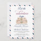 Travel wedding invitation in navy and blush pink - "Let the Adventure Begin". Please notice that the invite is not an actual postcard and should be mailed in an envelope. If you'd like to order this design with a postcard back, visit our store for more designs like this one.