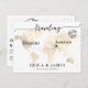 Announce your journey into marriage with this save the date postcard featuring a gold world map and text, "Travelling from Engaged to Married." This travel-inspired design is perfect for sharing your wedding date with family and friends. Personalize it with event details to ensure guests mark their calendars. A stylish and convenient way to set the tone for your special day.