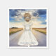 Travelling from Miss to Mrs bridal shower napkins with bride facing an open road. Personalize it with your event details.