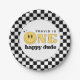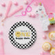 This one happy dude first birthday paper plate features a fun retro font and yellow smiley face with a chequered background. This plate is perfect for your little man to celebrate his first big birthday! Pair with anything in the TRAVIS Collection for a cohesive look.