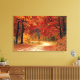 A scenic gravel and sand road through a beautiful forest of gorgeous midnight-black and charcoal tree trunks topped with vibrant Autumn leaf colours of ruby, gold and citrine!