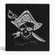 Pirate and sword llustration set against a black background.
