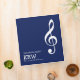 White musical note (treble clef) printed on dark blue background colour, personalized with your name and initials, and with your special subject (music or any other title).