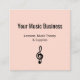 Music lessons business card, with a treble clef symbol on a rose gold background. With black customizable lettering, you customize with your own information. You also add your website to allow for connection with a QR code. Great for promoting your musical business.