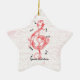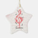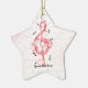 Red scrollwork sol note key custom ornament, featuring the sol note key in red scrollwork style and black notes.