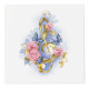 Gold, jewellery, treble clef decorated with delicate, artistically painted pink roses with fluttering blue butterflies.