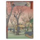 The vintage Plum Garden image is based on a Japanese woodblock print created in the 1850s by Utagawa Hiroshiga. The vintage tree blossom woodblock art shows plum trees with spring blossoms in a Japanese garden.