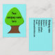 This fully customizable business card features a fun digital image of a tree with a green top and brown trunk on a sky blue background. You can type your company name on to the tree on the front, then type all your other important details on the back of the card. Click on the "customise it" button to fine tune the size, font and location of the text to meet your exact requirements. This business card was designed for arborists and gardeners but is suitable for other business types as well.