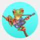 Tree Frog Playing Australian Flag Guitar Blue Classic Round Sticker