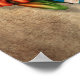 This cute design by artist Jeff Bartels features a small green tree frog holding a scratched and worn acoustic guitar. The flag of the Canadian province, Quebec is painted on to the old guitar giving it a patriotic look. The adorable tree frog musician is sitting on a small branch and is looking forward with its large red eyes. The over sized head and small body along with the details on the skin and guitar create a beautiful combination of a cartoon and realistic look. This unique and patriotic Quebecois tree frog guitarist pattern is perfect for all animal and music lovers.